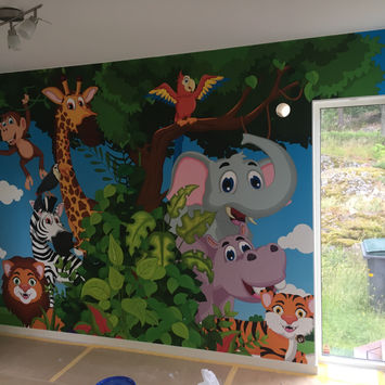 Tapetsering av fondvägg med fototapet i Värmdö.